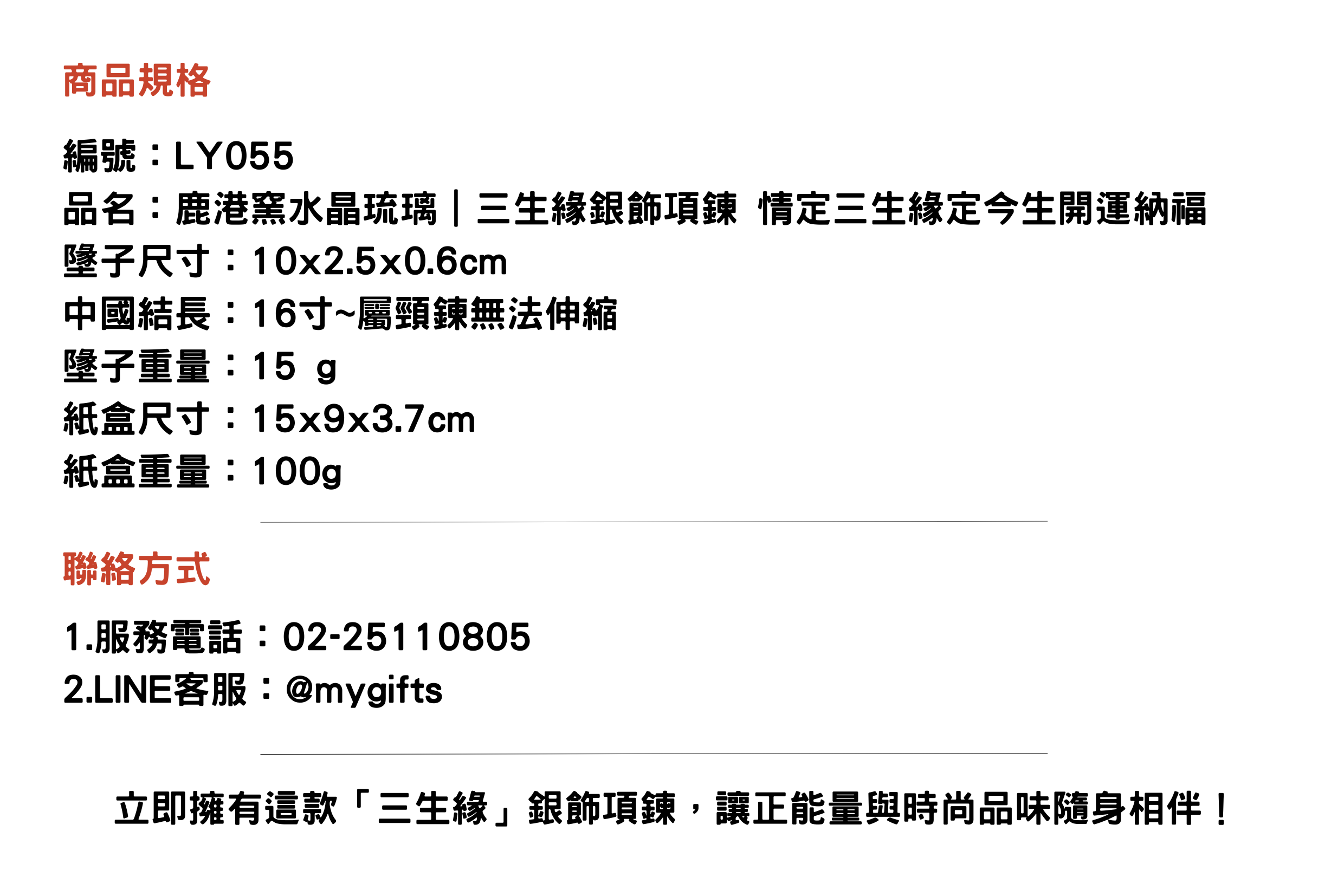 鹿港窯水晶琉璃|三生緣銀飾項鍊 情定三生緣定今生開運納福