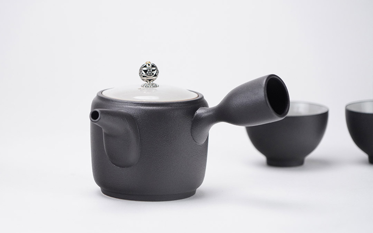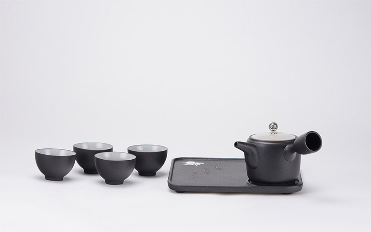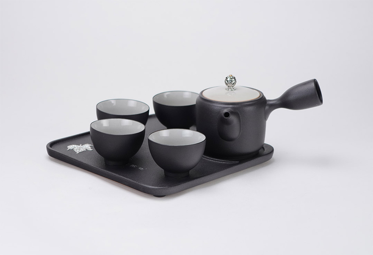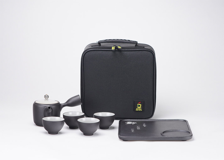 銀鑲雅陶6入旅行茶具組,嚴選天然岩礦與陶土調配製成的老岩泥,經多次高溫燒製及鐵泥漿噴塗,展現原始粗獷的質感。茶具表面採用現代噴砂工藝,楓葉與文字圖案細膩優雅,結合傳統黑陶的優點,讓茶葉在沖泡時能自由呼吸。杯內釉面通透,方便鑑賞茶湯色澤。壺蓋以傳統花紋藏銀植入,壺身則鑲嵌楓葉形態的錫銀合金,兩者相互輝映,兼具藝術與現代時尚。專屬收納包設計,輕巧便攜,適合商務、旅行、戶外等多元場景。壺身可客製企業Logo(最低訂購量500套),是企業贈禮與品牌形象推廣的理想選擇。此組茶具不僅實用,亦體現文化底蘊與生活美學。