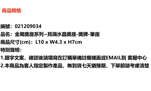 1. 商品名稱:金屬獎座系列~見識水晶獎座-獎牌-筆座