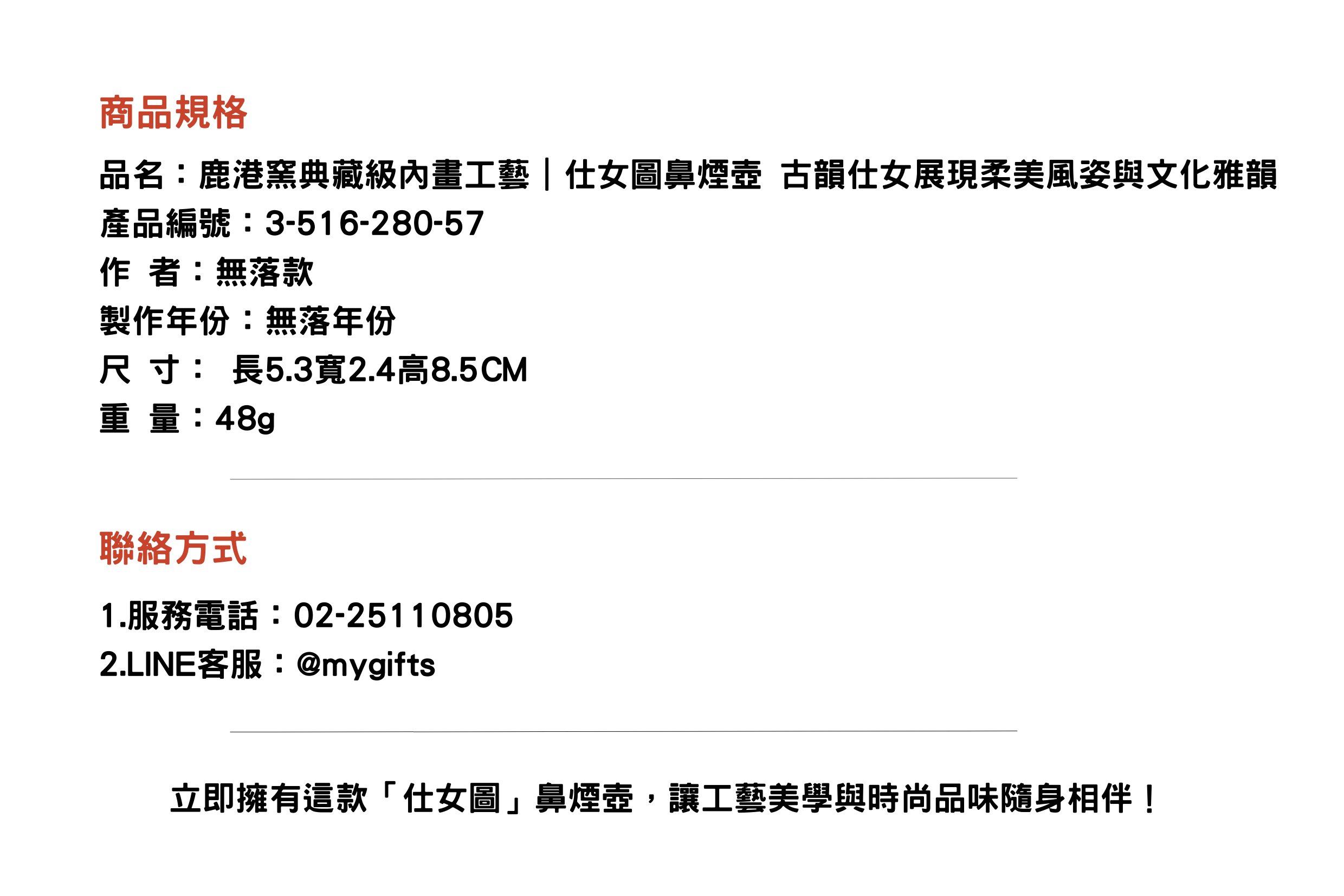 仕女圖鼻煙壺展現古韻仕女的柔美風姿,細膩內畫技藝勾勒端莊雅韻。水晶薄胎工藝搭配瑪瑙壺蓋,典雅高貴,適合收藏與贈禮,彰顯東方藝術之美。