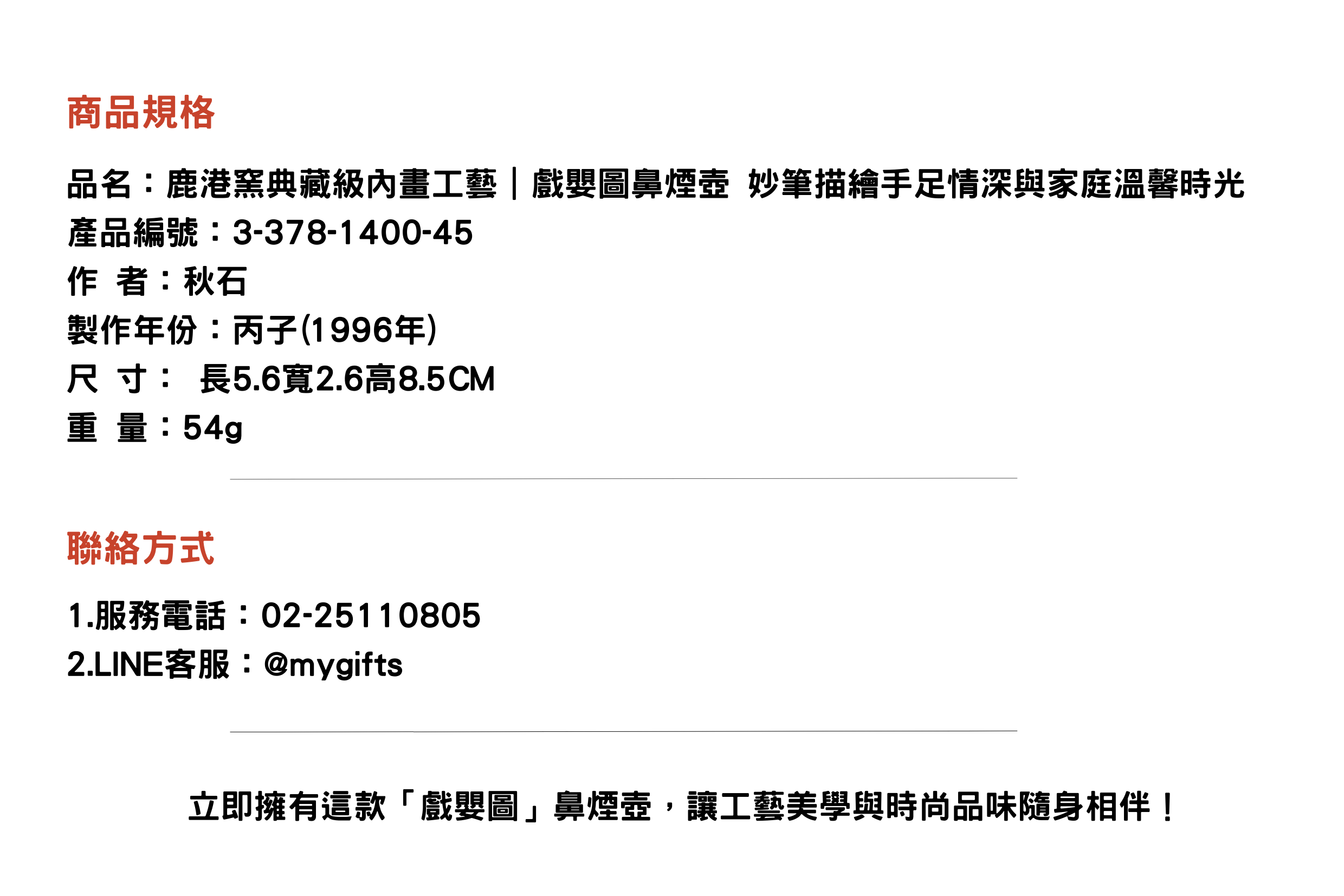 鹿港窯典藏級內畫工藝|戲嬰圖鼻煙壺 妙筆描繪手足情深與家庭溫馨時光