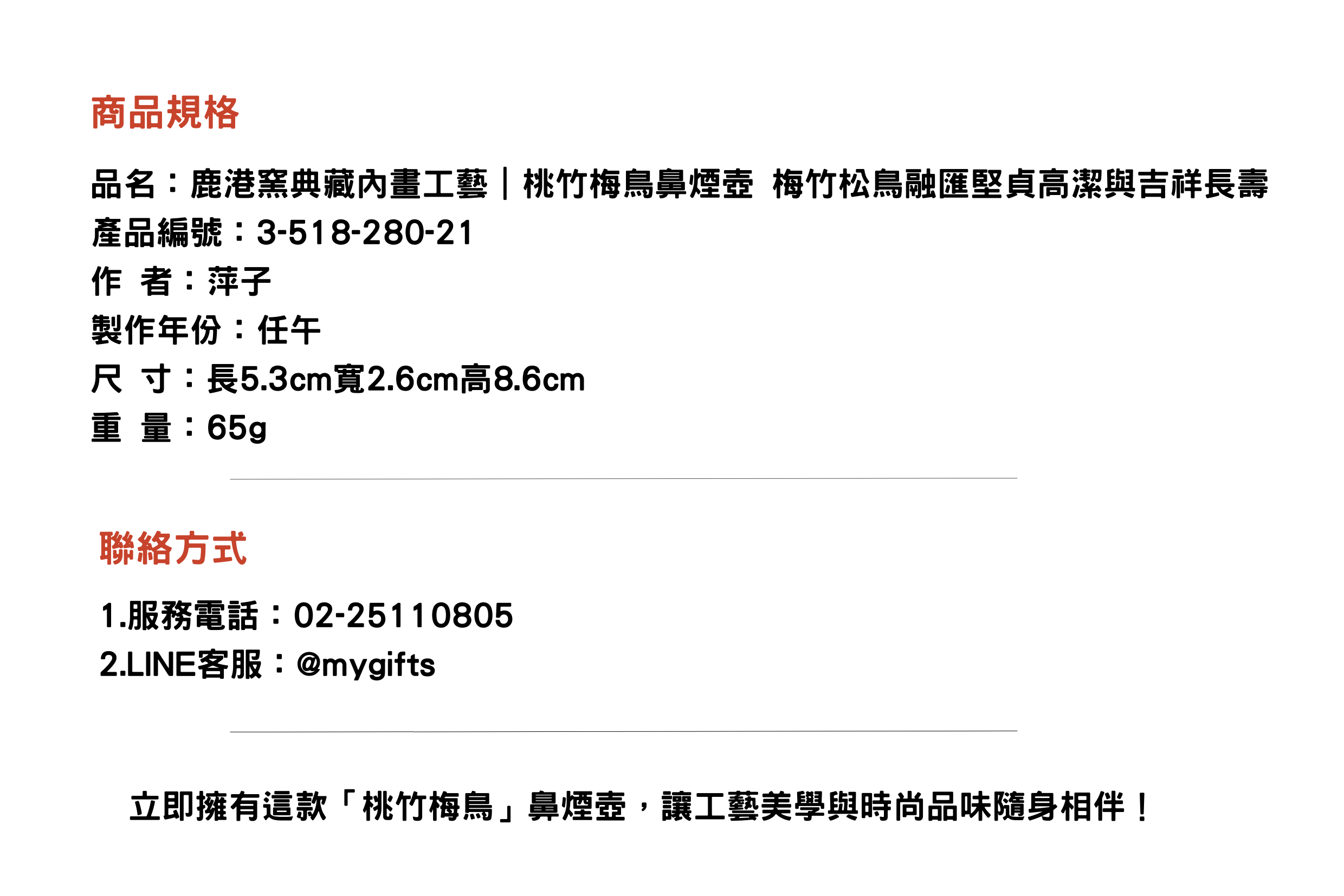 尺 寸:長5.3cm寬2.6cm高8.6cm