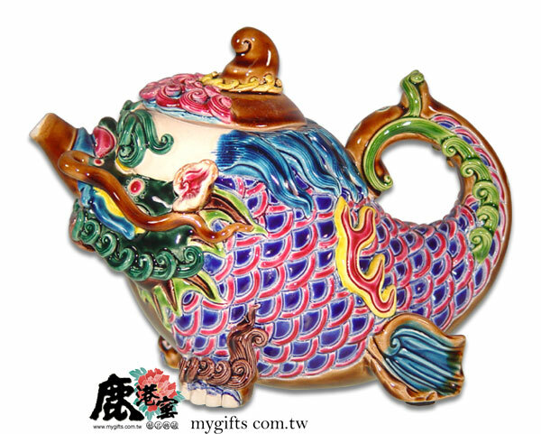 品名:交趾陶茶壺-龍生九子蚣腹