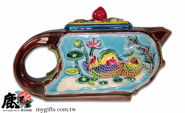 台灣國寶交趾陶|居家開運商品 富貴鴛鴦茶壺
