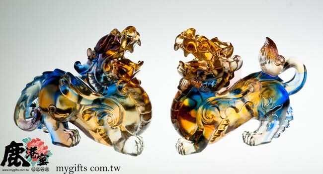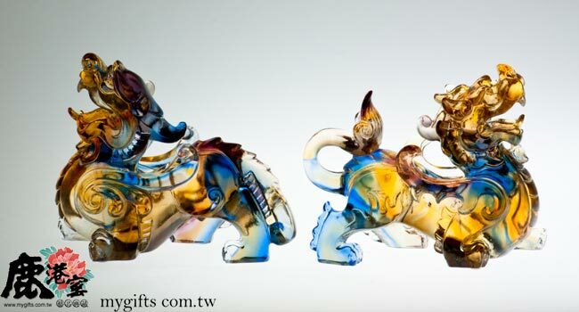 琉璃貔貅對,象徵招財納福、辟邪鎮宅,手工打造,質感非凡,適合家居與辦公室擺飾,助您聚財轉運。