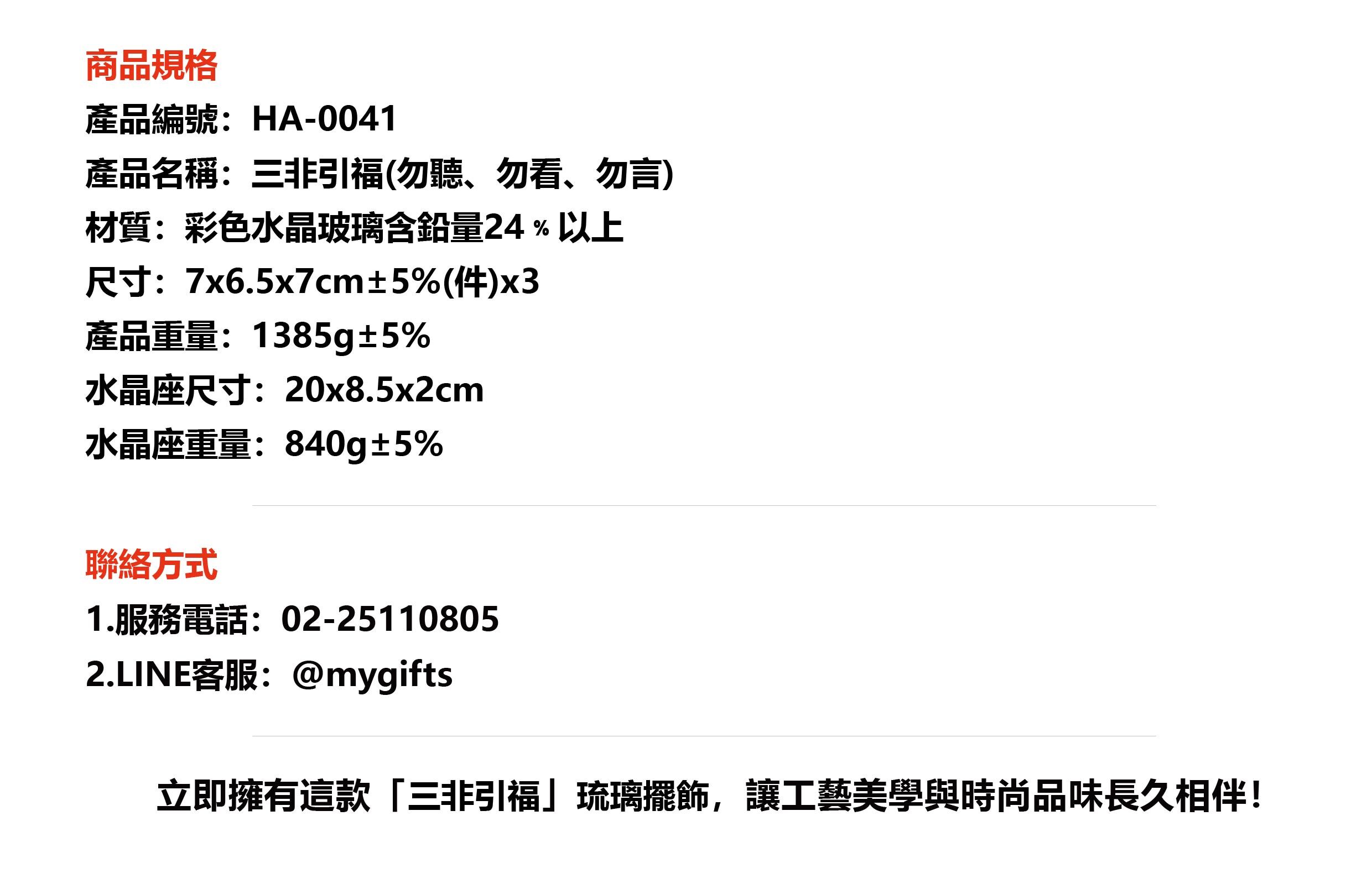 三非引福琉璃擺件,象徵「勿聽、勿看、勿言」的智慧提醒,搭配水晶底座,居家開運收藏佳品。